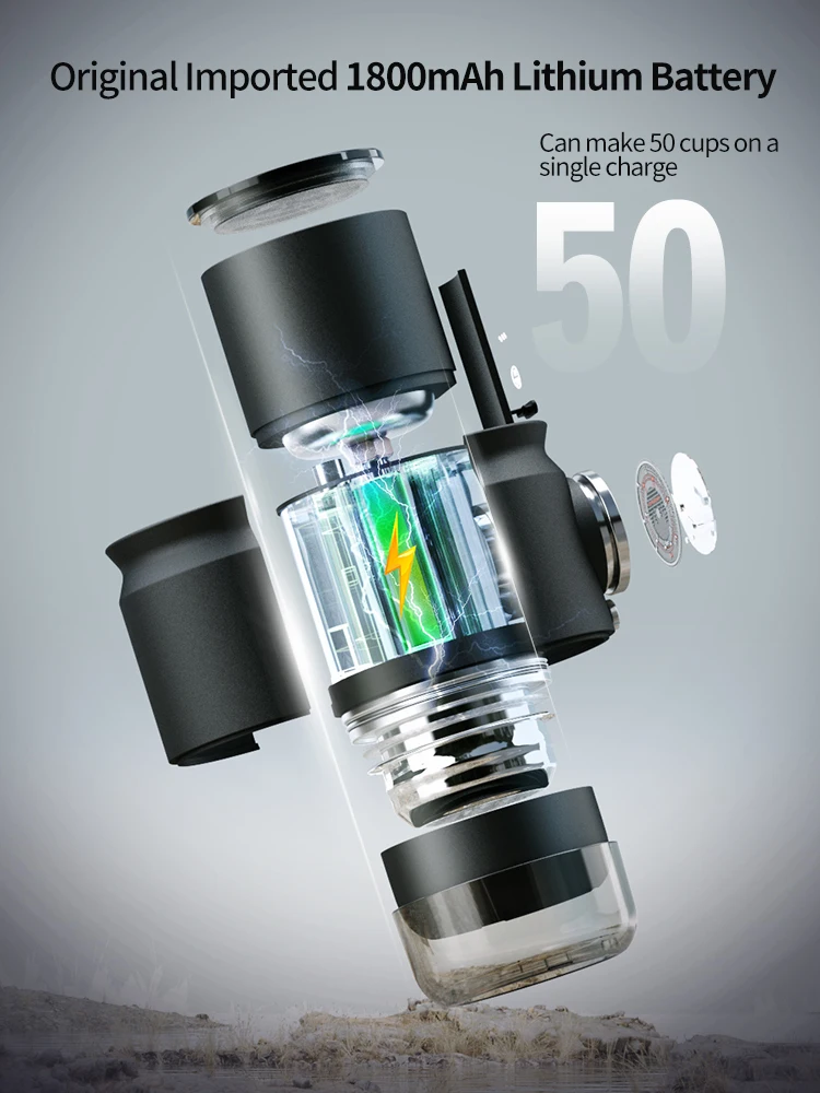 *Premium Battery Capacity: The travel espresso machine is equipped with 1800mAh battery, compatible with 10-15W USB-C car charger for universal charging, brews 50+ cups with hot water.